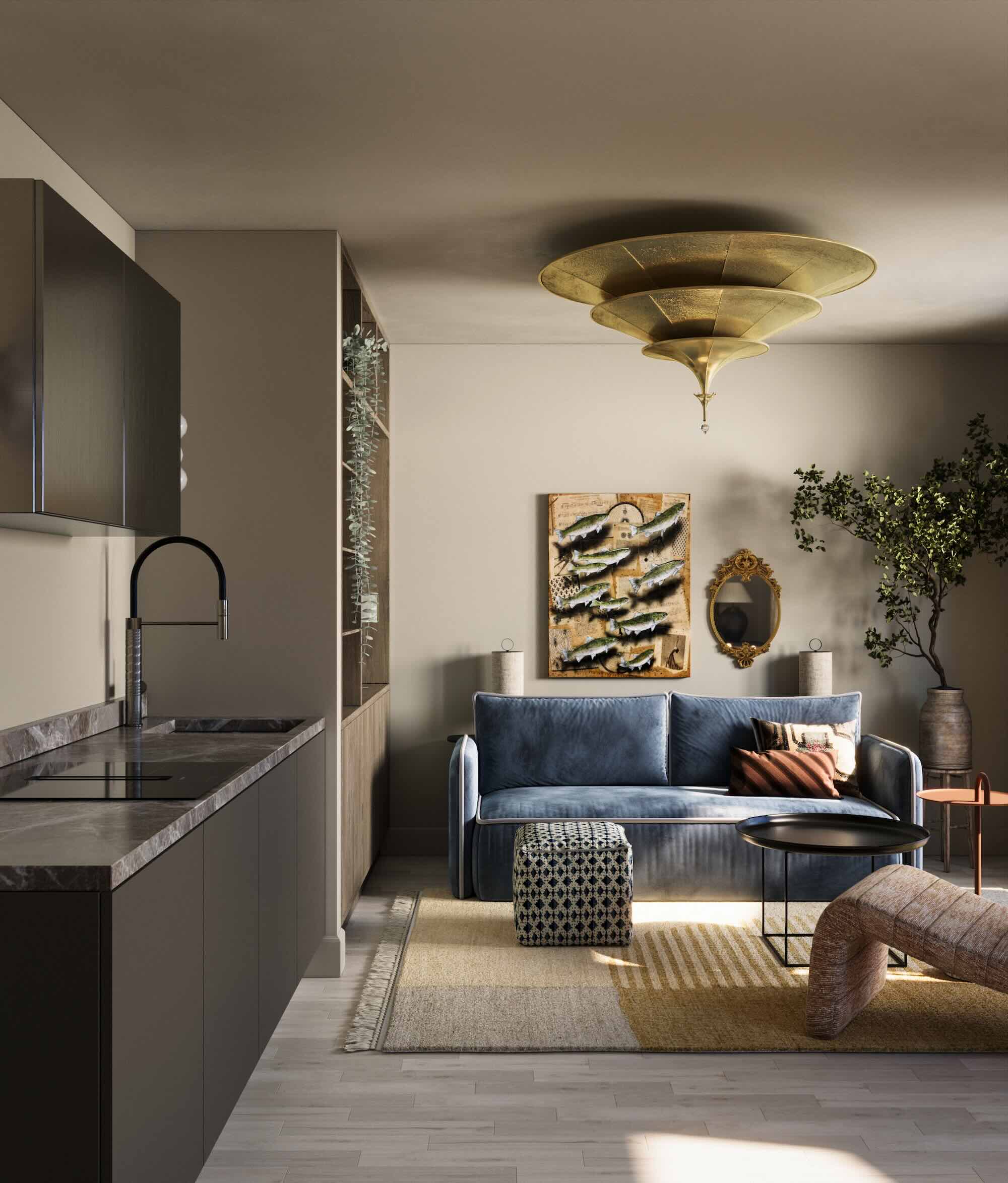Das Ziel war es, ein Ferienhaus am Tegernsee so zu gestalten, dass es sowohl modernen Komfort als auch traditionelle Gemütlichkeit bietet. Der Fokus lag auf der effizienten Nutzung von fünf Zimmern bei gleichzeitig hoher Wohnqualität.